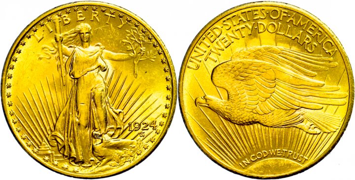 Der »Double Eagle« ist eine US-amerikanische Goldmünze zu 20 Dollars. Man unterscheidet zwei Typen: Einmal den „Liberty Head“ (bis 1906) und ab 1907 bis 1933 den »Saint Gaudens«-Typ. Das Feingewicht beider beträgt 30,08g. Je nach Erhaltung, Jahrgang und Prägebuchstabe, kann der Sammlerwert den Goldwert zum Teil um ein Vielfaches übersteigen.